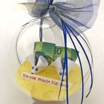 Die Kugeln gibt es in drei Grössen. Themabezogen können sie so, sehr originell Geld oder Gutscheine verpacken lassen. Themen wie Reisen, Wandern usw. wirkt in der Kugel sehr speziell.